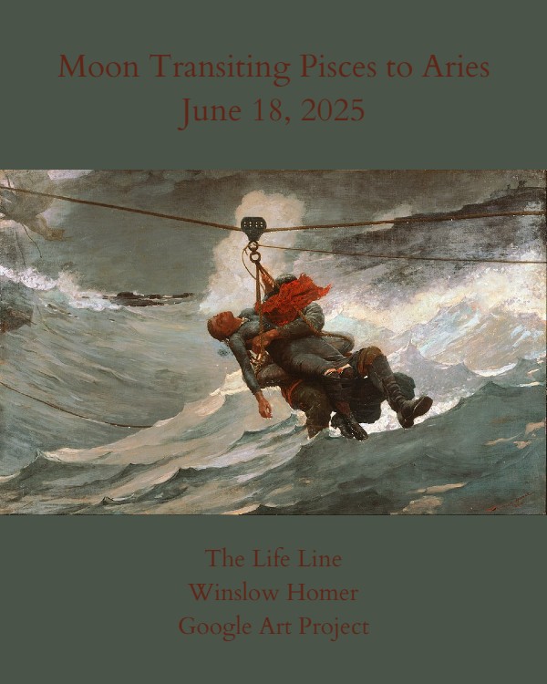 Moon transiting Pisces to Aries, Wednesday, June 18th, brings something in your life to a point of importance, urgency, or crisis that demands communication or an action in response, as the moon shifting from a mutable water sign to a cardinal fire sign in the early evening moves from the North Node in Pisces to join Saturn and Neptune in Aries, while forming a Minor Grand Trine aspect pattern with Pluto retrograde in Aquarius and Uranus in Taurus, a square aspect with the sun in Gemini conjunct Jupiter in Cancer, a trine aspect with Mercury in Cancer, and a Yod aspect pattern with Mars in Virgo and Pluto in Aquarius, while Pluto and Mars create a second Yod with the sun and Jupiter. This is a day of grace under pressure and choosing to do the right thing, even if it is uncomfortable or requires a sacrifice or risk. A second Minor Grand Trine consisting of Mars, the sun, Jupiter, and Chiron in Aries, as well as a sextile aspect between Mercury in Cancer and Venus in Taurus, may offer you protection when you step into the role of a rescuer, hero, advocate, or healer. Some people could discover a higher calling or become determined to live a more meaningful life. Others might simply feel a sense of duty or obligation to improve themselves, do more, or encourage others to live up to the potential they see in them by offering them a life line of some kind. Those who go above and beyond to help others will be assisted or rewarded in some way, and anyone in urgent need of help can ask for it and receive it.