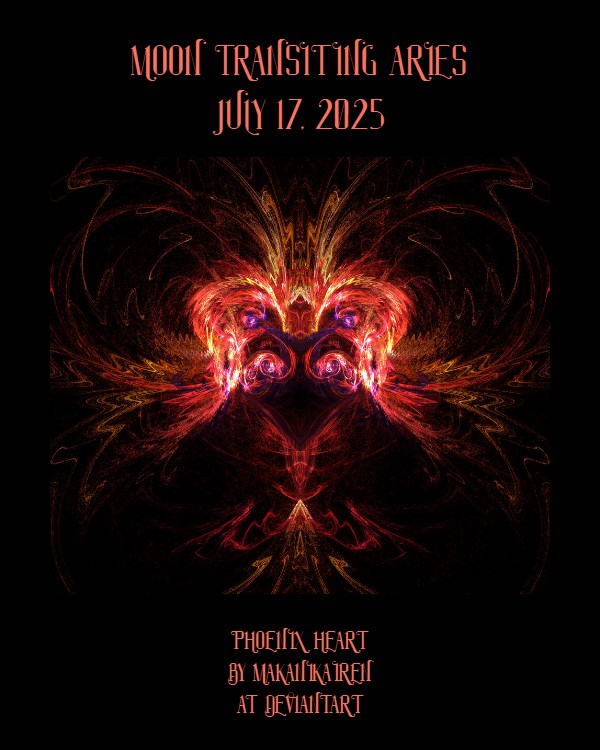 Moon transiting Aries, Thursday, July 17th, activates a heart awakening and a resurrection of love (especially self-love) through the overcoming of fear or the release of past pain or loss as the moon conjunct Chiron in Aries forms a T-square aspect pattern with Pluto retrograde in Aquarius and the sun in Cancer, as well as a trine aspect with Mercury in Leo, which is sextile to Venus in Gemini. Pluto and the sun opposing each other in that T-square also hold the positions of the tips of the wings in a Cradle/Angel Wings aspect pattern drawing in the combined energy of the sun in Cancer, Pluto in Aquarius, Saturn and Neptune both retrograde in Aries, and Uranus in Gemini, assisting you to rise like a phoenix from the ashes of your past to change and transform your present and future. Courage and fortitude are easy to access today, and as you gain clarity, set your intentions, and take actions, the cardinal fire Aries moon will move things along quickly. Late tonight, Mercury in Leo will go retrograde, but that doesn’t mean you have to stop, drop, and roll. When planets retrograde, they call for you to spend more time with them in whatever house, aka, area of life they are visiting in your natal chart. Mercury retrograde in Leo from July 17th to August 11th can be an excellent time to return to love, passion, courage, and creativity – you might discover a hopeful spark in the ashes and embers which you can fan to a flame.