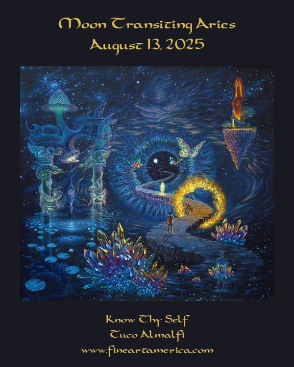 Moon transiting Aries, Wednesday, August 13, invites you to explore your inner landscape to have a better understanding of just how wonderful you are, and as you do so, you may be encouraged and emboldened to live a more creative and heart centered life, as the moon approaching Chiron retrograde in Aries forms a trine aspect with the sun in Leo, and a square aspect with Venus conjunct Jupiter in Cancer. A semisquare aspect between the moon and Uranus in Gemini, which holds peak position at the top of a Castle aspect pattern containing several other dynamic energy exchanges among multiple planets can make you more aware of your unique talents, interests, or the opportunities within your reach that can assist you in achieving your goals of growth on all levels – material, physical, emotional, intellectual, and spiritual. A desire to be free of pain, fear, past trauma, baggage, or limitation is being triggered by a T-square aspect pattern consisting of the moon and Chiron in Aries, Mercury in Leo, and Pluto retrograde in Aquarius. This may not feel comfortable, but moving into your thoughts and feelings to acknowledge and work through them is both cathartic and rewarding, as you release what no longer serves you and uncover the truth and worth of your soul.