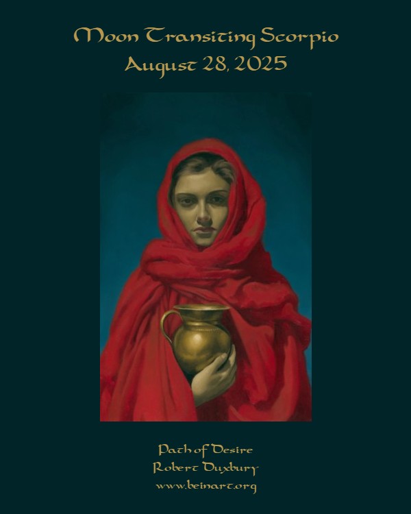 Moon transiting Scorpio, Thursday, August 28th, fuels your desire and the determination to do what it takes to fulfill that desire, as the moon forms a Grand Square aspect pattern with Venus in Leo, Chiron in Aries, and Pluto in Aquarius, and a sextile aspect with the sun in Virgo. Jupiter, the planet of abundance and growth, in the symbiotic water sign of Cancer squares Mars in relationship minded Libra, and squares Chiron in self-determined Aries, while Chiron is trine to the sun and trine to Mercury in ardent Leo, indicating that the person with the stronger desire in any kind of overture or negotiation can influence and convert the other to align with their passion or plan. The fixed sun signs of Taurus, Leo, Scorpio, and Aquarius may feel more of the intense drive and motivation to lock someone or something into their lives securely, but no matter what your sun sign might be, today’s intensely passionate, magnetic, and willful moon activates not just the area of your chart containing Scorpio energy, but all four corners of the Grand Square bringing pressure to bear. Whatever you choose to say or do can impact multiple areas of your life simultaneously, and then the Cradle aspect pattern involving Venus, Pluto, Uranus in Gemini, and Saturn conjunct Neptune in Aries grabs the ball of energy the Grand Square is bouncing and aims it toward the hoop of change and realization of a dream. You may spend some time today working through the process of analyzing your circumstances and cataloging your dislikes to get to the core of what you truly desire. Having enough of what has become intolerable or painful can light the warrior fire of Chiron in Aries, burning off negativity and directing the Chiron potential for healing toward Mercury, the planet of thought and communication, in courageous and creative Leo, and the sun in problem-solving Virgo, shining in the area of life in your chart which is most in need of clarification and attention. Will you encounter ease once you know what you really want? Probably not, but you will have the energy and passion to work hard or fight for it. “The only difference between a casual interest and a deep desire is the latter inspires a willingness to endure struggle.” — Jennifer Williamson. I read somewhere that the power of Scorpio’s ruling planet, Pluto, is like a cannonball, or lava, which both feel like a condensed concentration of extreme intensity to me. Today, the Scorpio moon gives you the power to condense your intensity into a concentrated force which can magnetize who or what you desire, if you will it so.