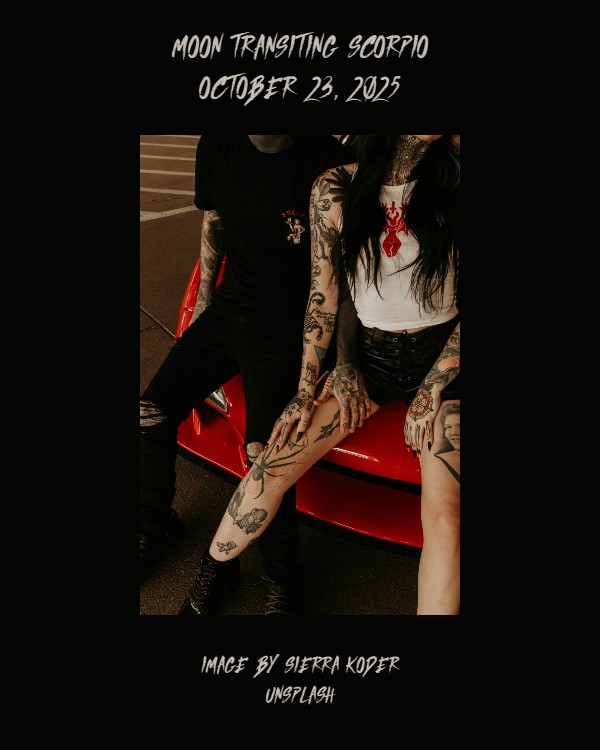 Moon transiting Scorpio, Thursday, October 23, activates focused attention and a strong urge to go after who or what you desire, which is similar to yesterday’s energy while the moon is still hanging out with Mercury and Mars in Scorpio, but it is even more pronounced, and you may be less subtle about expressing your intentions, as the sun enters Scorpio today to begin the sexy and soul stirring Scorpio season. Don’t be surprised if you feel the urge to reveal your Inner Goth through your fashion choices today, or find yourself booking an appointment for that new tattoo, with that triple dose of Scorpio planets also channeling some assertive and attention seeking Aries energy, because physically expressive Mars rules fiery Aries, and was the original ruler of Scorpio before Pluto took that role. The moon, Mars, and Mercury oppose Uranus in Gemini, stimulating edgy, intelligent, and irreverent humor, and risky, impulsive actions emboldened by passion and curiosity. You could wish to be seen as unique and magnetic now, but a Grand Trine involving the moon, Mercury, Mars, in Scorpio, Jupiter in Cancer, and Neptune conjunct Saturn, both retrograde in Pisces, indicates that soul merging, sharing thoughts and feelings, deepening bonds of intimacy, and building trust are the real reasons for stepping out of your comfort zone as you signal your intentions through the boundary merging and magnetically manifesting Scorpio intensity you are expressing physically. Thanks to that Grand Trine in the water element, if your intuition is telling you someone is as into you, as you are into them, or your money luck is about to change, your intuition is probably right.